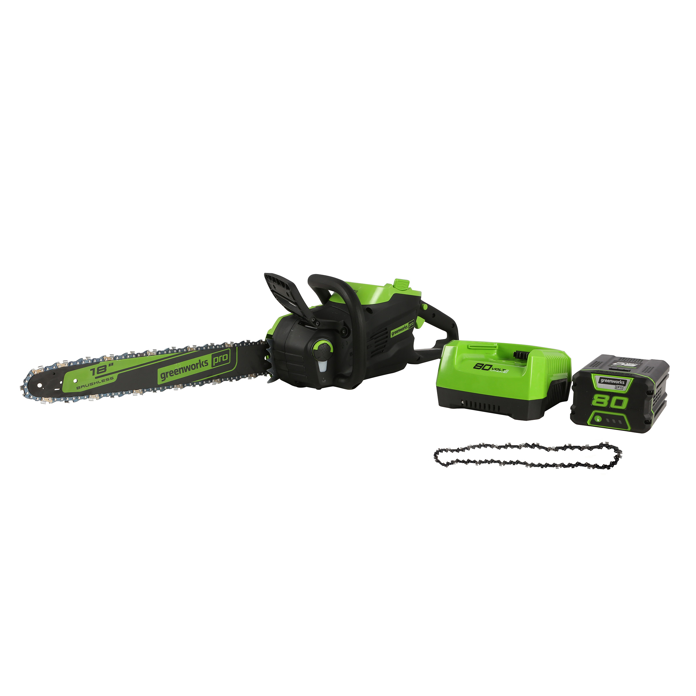 [$100 OFF] Greenworks 80V 18" 2.0kW Brushless Chainsaw + Extra Chain, 2.0 AH Battery and Charger Included