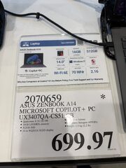 ASUS Zenbook A14 OLED Copilot+ PC 14-in Laptop, Qualcomm Snapdragon X X1-26-100 – 16GB RAM, 512GB SSD(669.97$)(YMMV?)