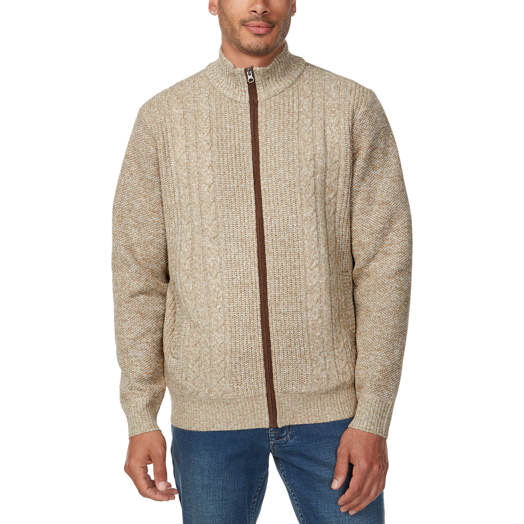[$7 OFF] Buffalo Men's Full Zip Cable Knit Sweater, Tan, Small