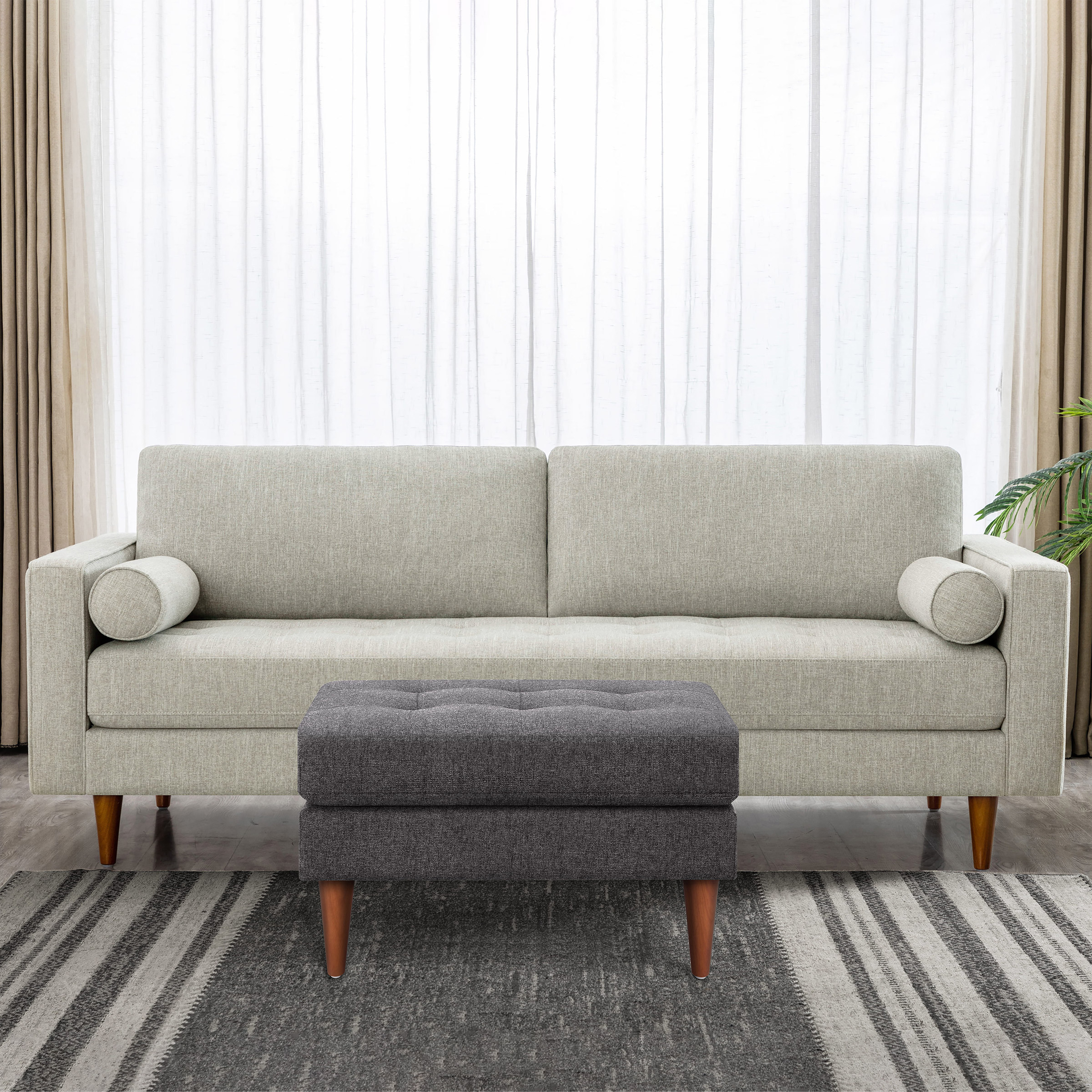 [$70 OFF] King Fabric Upholstered Ottoman, Dark Grey