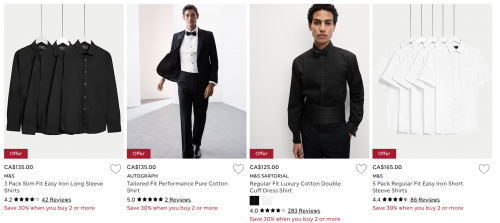 Marks & Spencer Canada: Save 30% When You Buy Two Men’s Shirts + 15% off for Sparks Members + More
