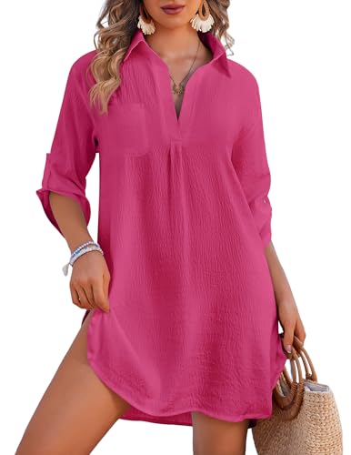 Ekouaer Women's Cover Ups for Swimwear Beach Shirt V-Neck Bikini Bathing Suit Swimsuit Covers