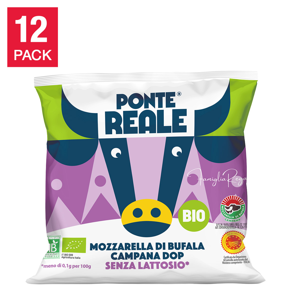 [$30 OFF] Ponte Reale Organic Lactose free Buffalo Mozzarella Cheese 125 g (4.4 oz) × 12 pack