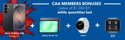 LAVA HOT - S26 + Free Tab A11+, Galaxy Watch 8 44mm LTE, Galaxy Buds4 for CAA Members Unlimited Canada + U.S. + MX+Carib