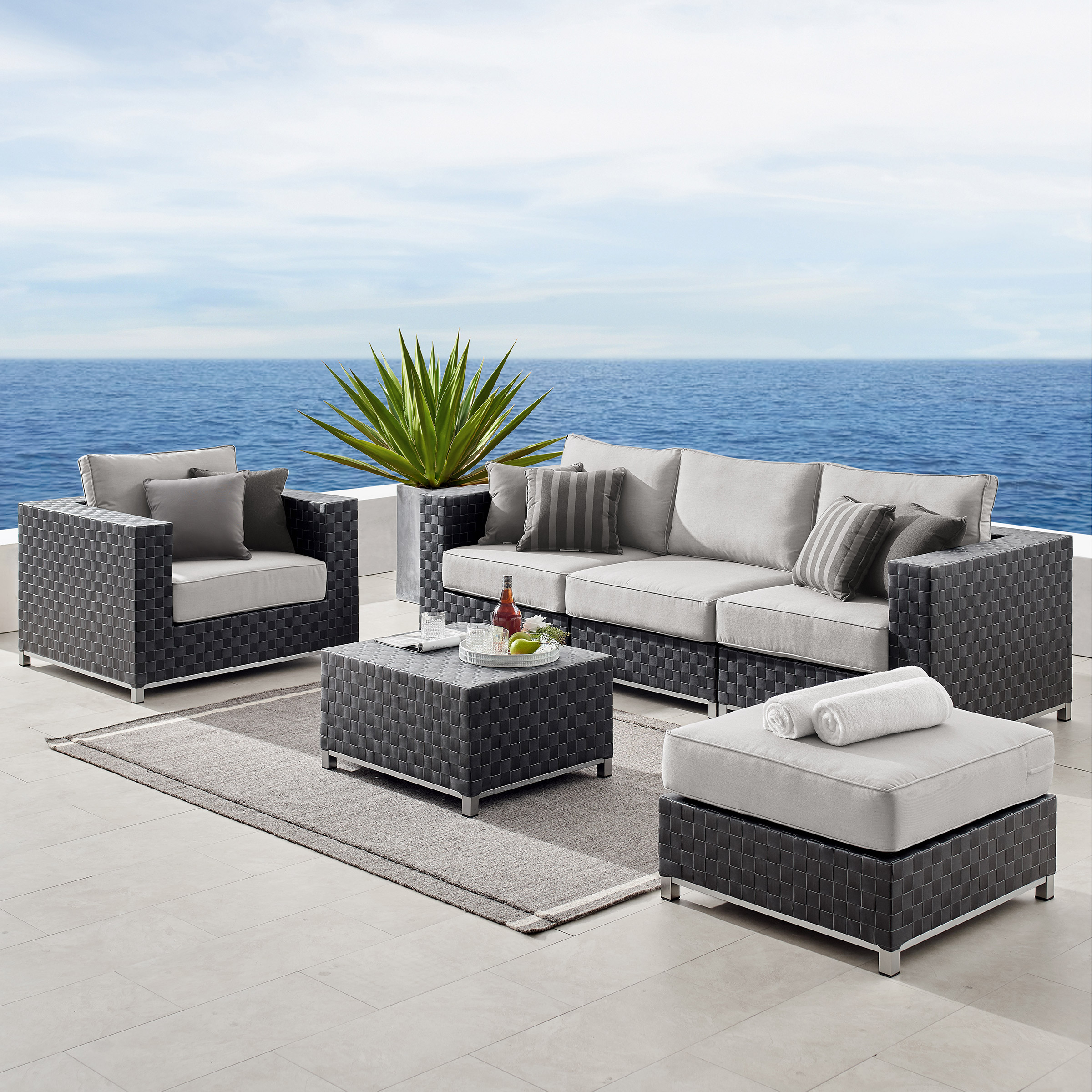 [$600 OFF] Soho 6-piece Patio Sectional Conversation Set, Dark Grey