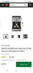 BLACK+DECKER Semi-Automatic 15-Bar Espresso and Cappuccino Maker - $59