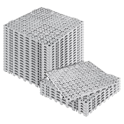 MYFAMIREA Modular Interlocking Cushion 24 Pack 11.8" x 11.8" Rubber Floor Tiles Non-Slip Splicing Drainage Mats for Deck, Pool, Outdoor Shower, Patio, Balcony, Indoor Bathroom, Kitchen, Yard (Gary)