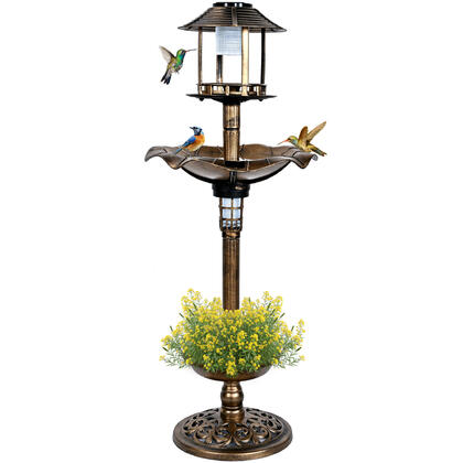 3-in-1 Solar Bird Bath Feeder, 43-Inch Tall Weather Resistant Garden Decor with LEDs - Yardlab
