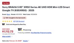 Sony BRAVIA 5 65" $1098.98