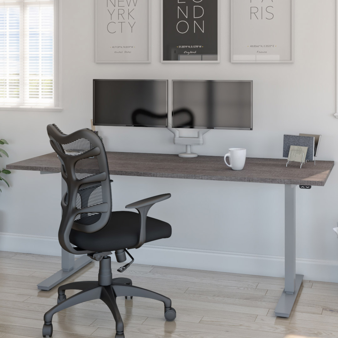[$150 OFF] Bestar Upstand 76.2 cm x 182.9 cm (30 in. x 72 in.) Height Adjustable Desk with Dual Monitor Arm, Grey