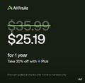 Alltrails 1 yr subscription 30% off $25.19