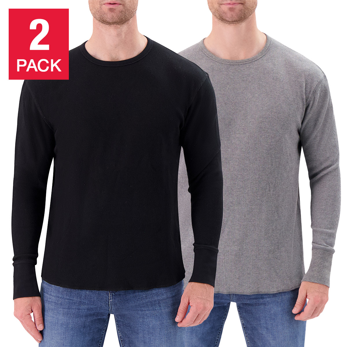 [$7 OFF] Modern English Men's Long Sleeve Waffle T-Shirt, 2-pack, Black, Medium
