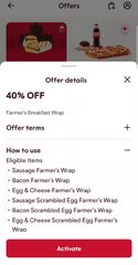 40% off Farmer's Breakfast Wrap - Breakfast tomorrow.