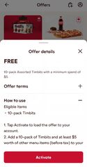 Free 10-Pack Timbits with $5 min purchase - 24hr promo for Canada Gold