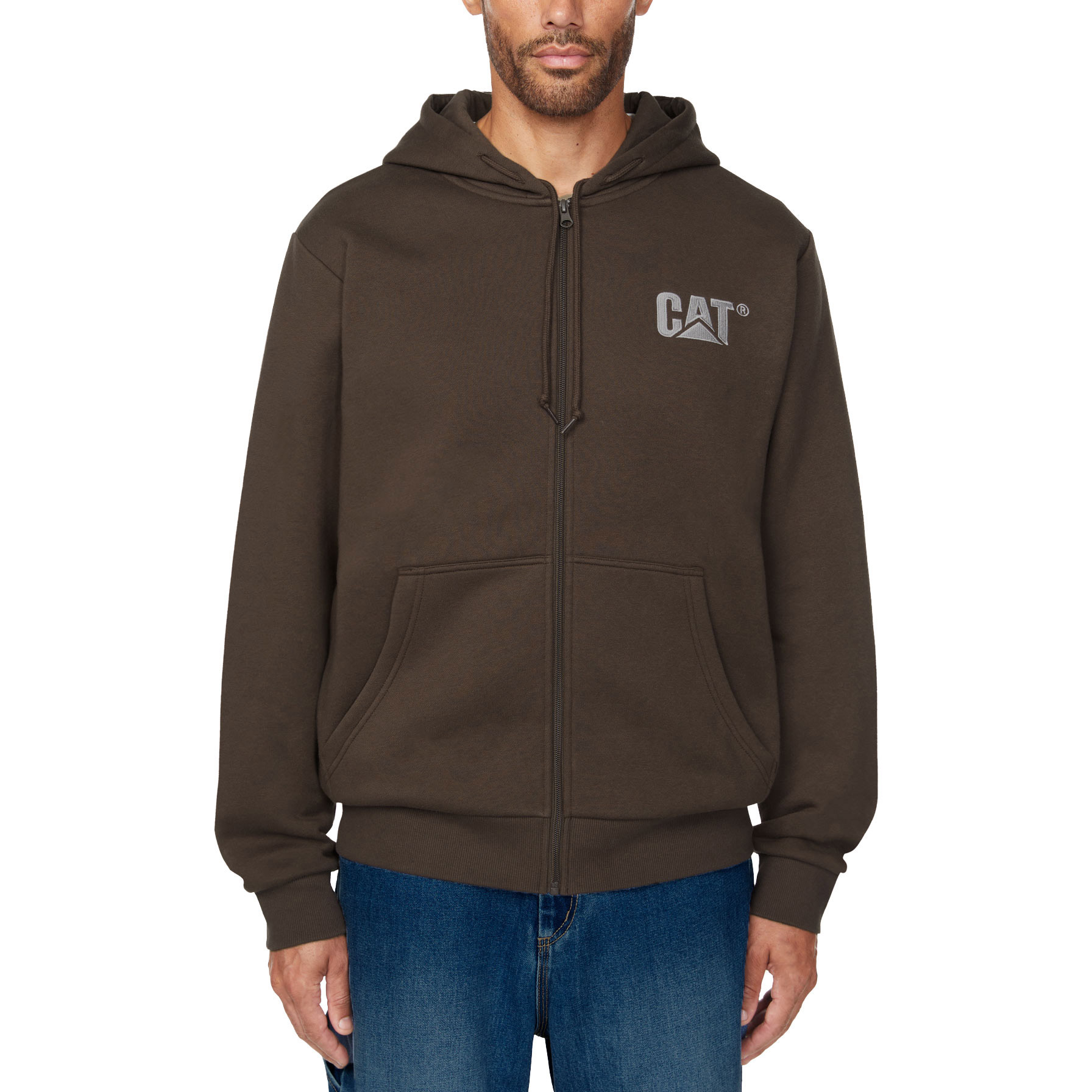 [$9 OFF] Caterpillar Men’s Full-Zip Fleece Hoodie, Brown, Medium