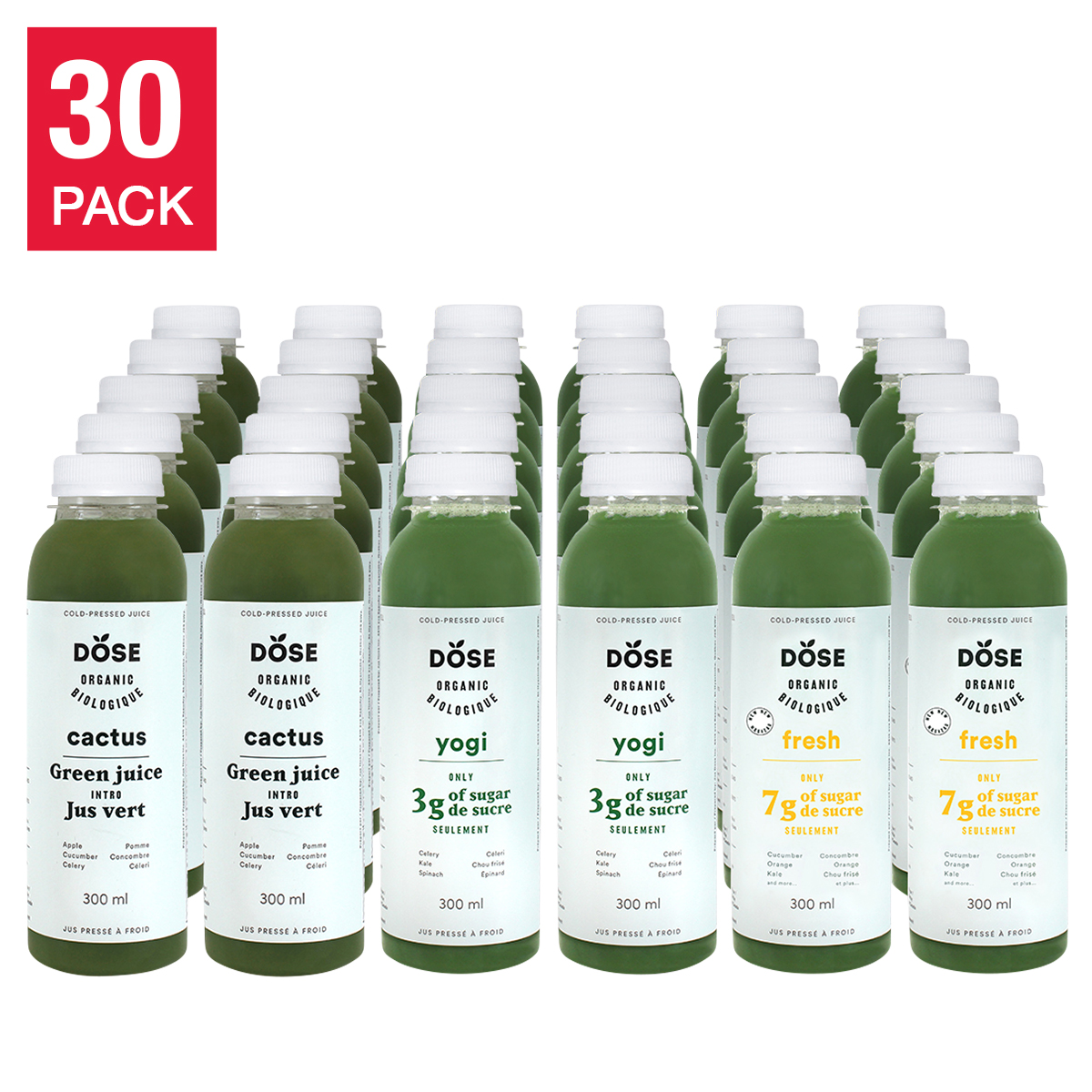 [$35 OFF] DOSE Organic Cold-Pressed Green Juice Variety Pack 300 mL (10.14 fl oz) x 30 bottles