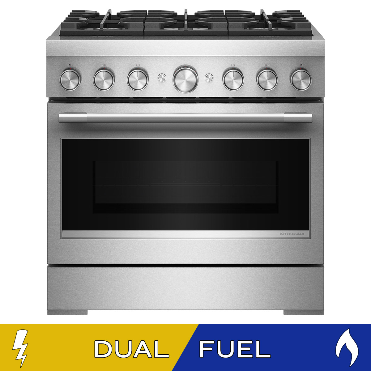 [BUNDLE OFFER AVAILABLE] KitchenAid 36 in 5.1 cu ft. Stainless Steel Commercial-Style Gas 6 Burner Range with True Convection and No Preheat Air Fry Mode