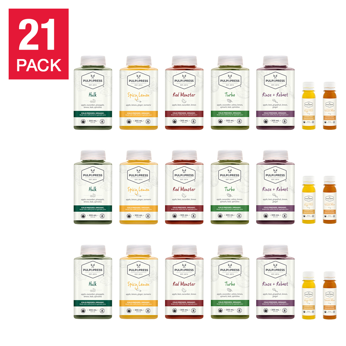 [$25 OFF] Pulp & Press 3-day Organic Cold-Pressed Juice Cleanse, 21 bottles