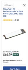 [Lenovo] 1TB Performance PCIe Gen4 NVMe SSD (M.2 2280) - $83.99 (Possible Price Error/Hot Deal?)