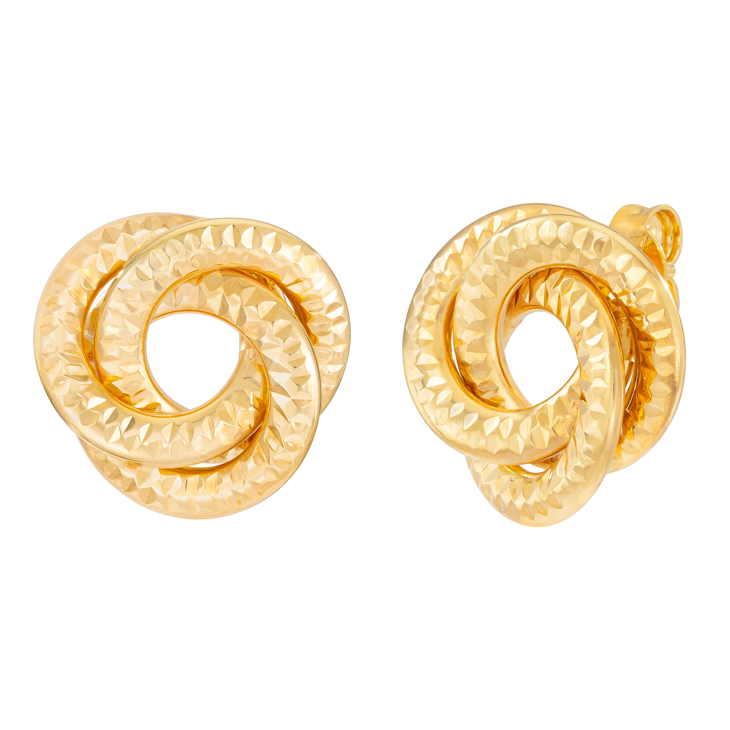 [$80 OFF] Diamond Cut Love Knot Earrings in Yellow Gold