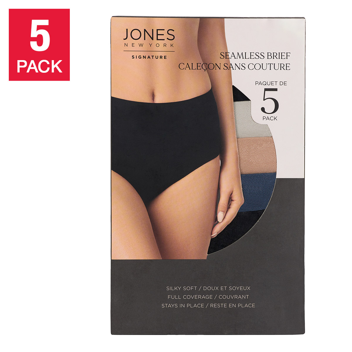 [$5 OFF] Jones New York Women's Seamless Briefs, 5-pack, Black, Medium