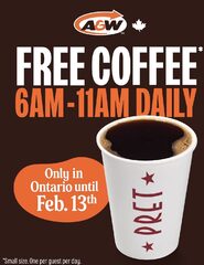 Ontario Only! A&W Free Small Coffee in Selected Stores Each day till Feb 13th 6-11am